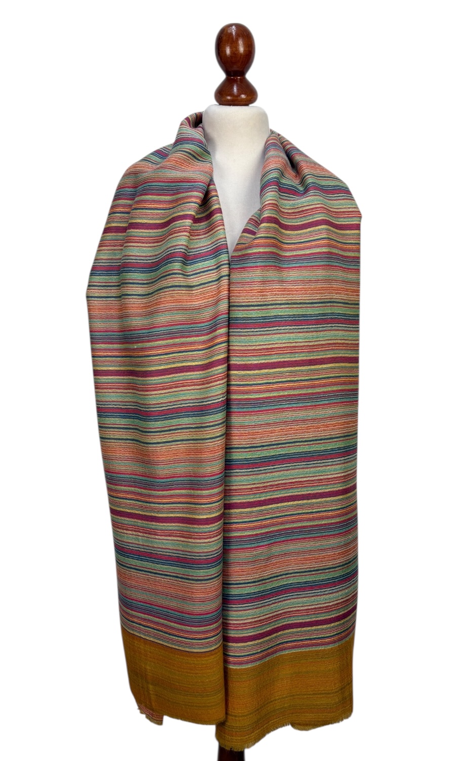 Hochwertig gefertigter Schal aus feiner Wolle mit Streifenmuster.