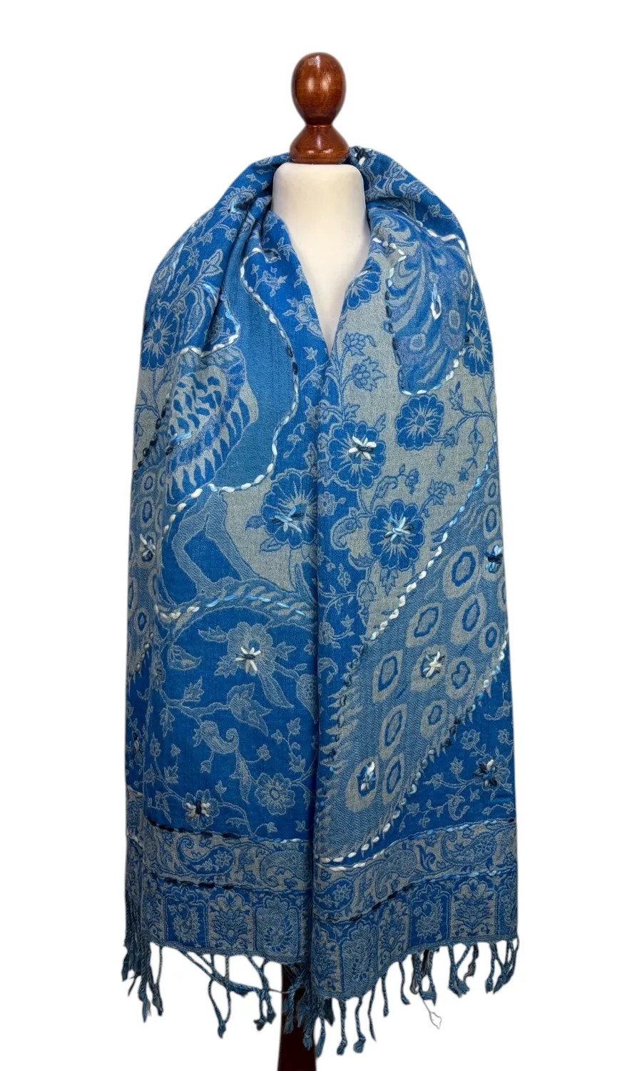 Der Schal ist durch seine Bestickung ein absolutes Unikat.