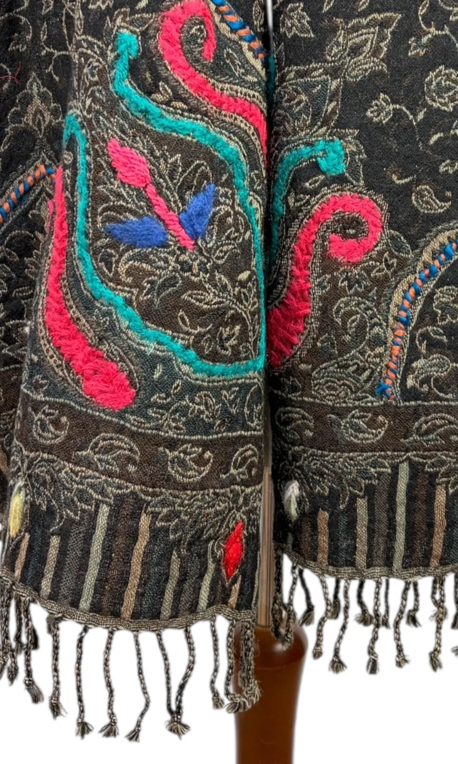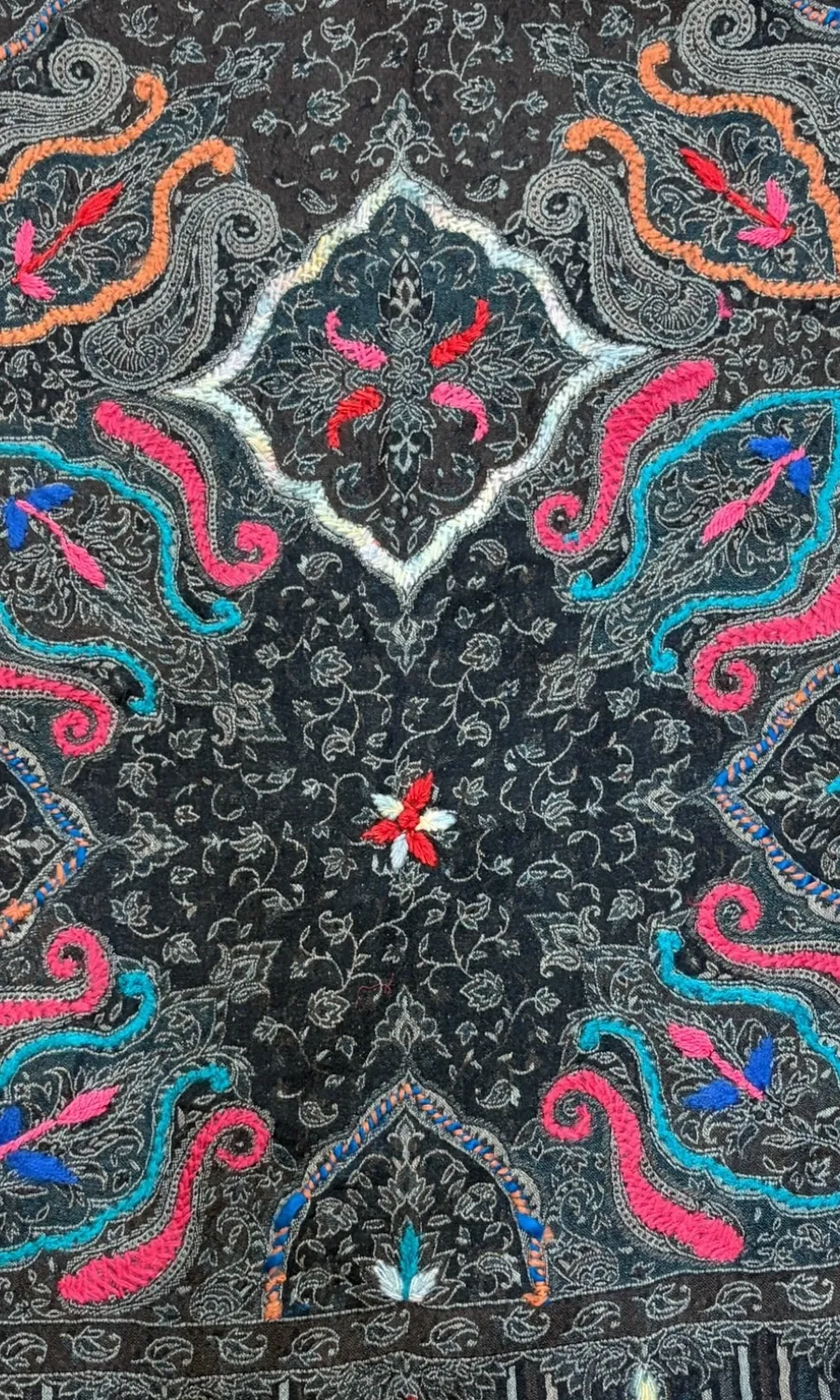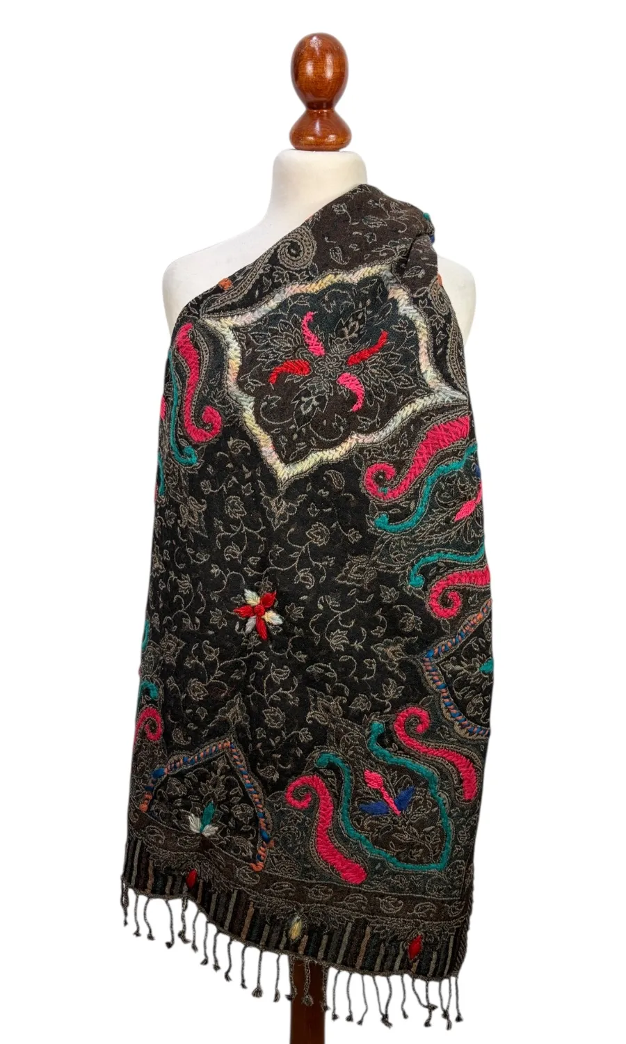 Handbestickte Stola aus Merinowolle.