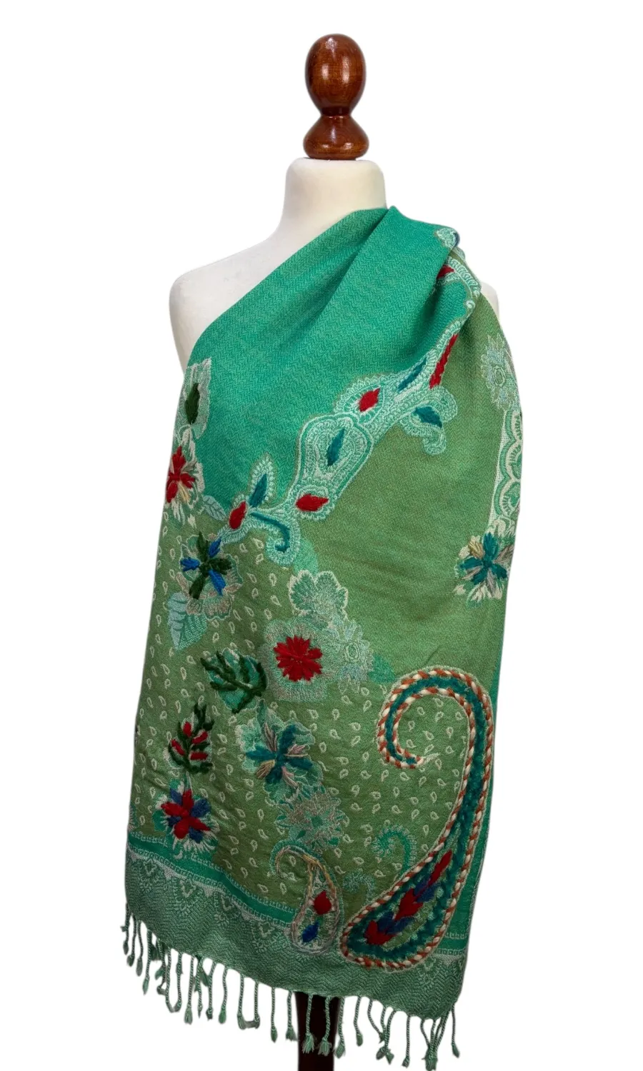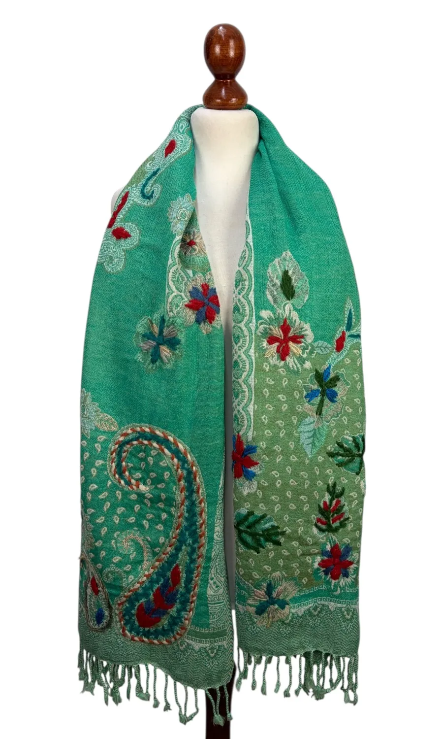 Handbestickte Stola aus Merinowolle.