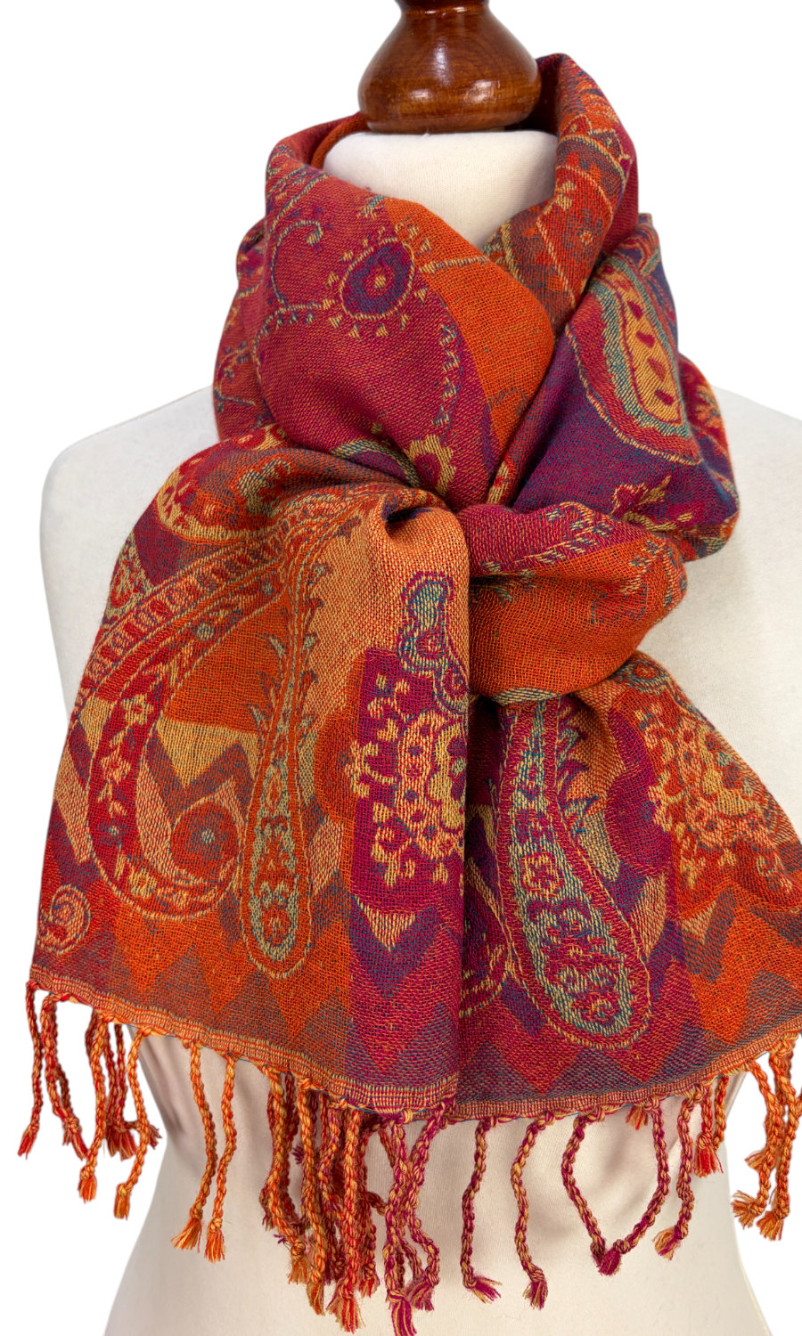 Dieser wunderschöne Schal wurde in einem kleinen Betrieb in der Region Kaschmir (Indien) gefertigt  und ist eine limitierte Kollektion. Mit seiner Größe von ca. 35 cm x 160 cm lässt er sich vielseitig binden und ist für das perfekte Accessoire für eine Jacke, Pullover oder Bluse. Durch seine doppelte Webung hat der Schal zwei unterschiedliche Seiten, die sich in der Farbgebung leicht voneinander unterscheiden. Mit einem Gewicht von nur ca. 140g ist er federleicht an deinem Hals und schenkt dir wohlige Wärme.