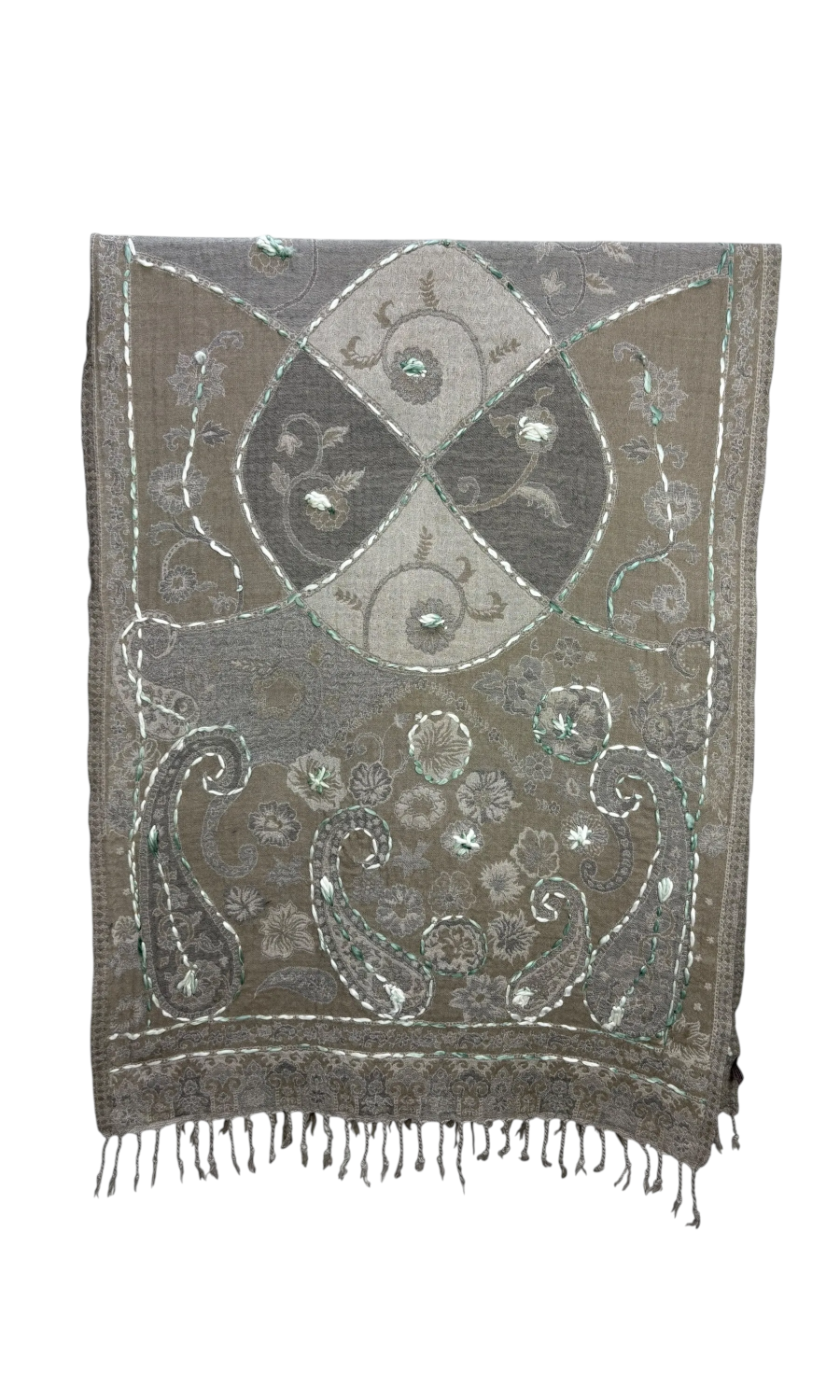 Handbestickte Stola aus Merinowolle.
