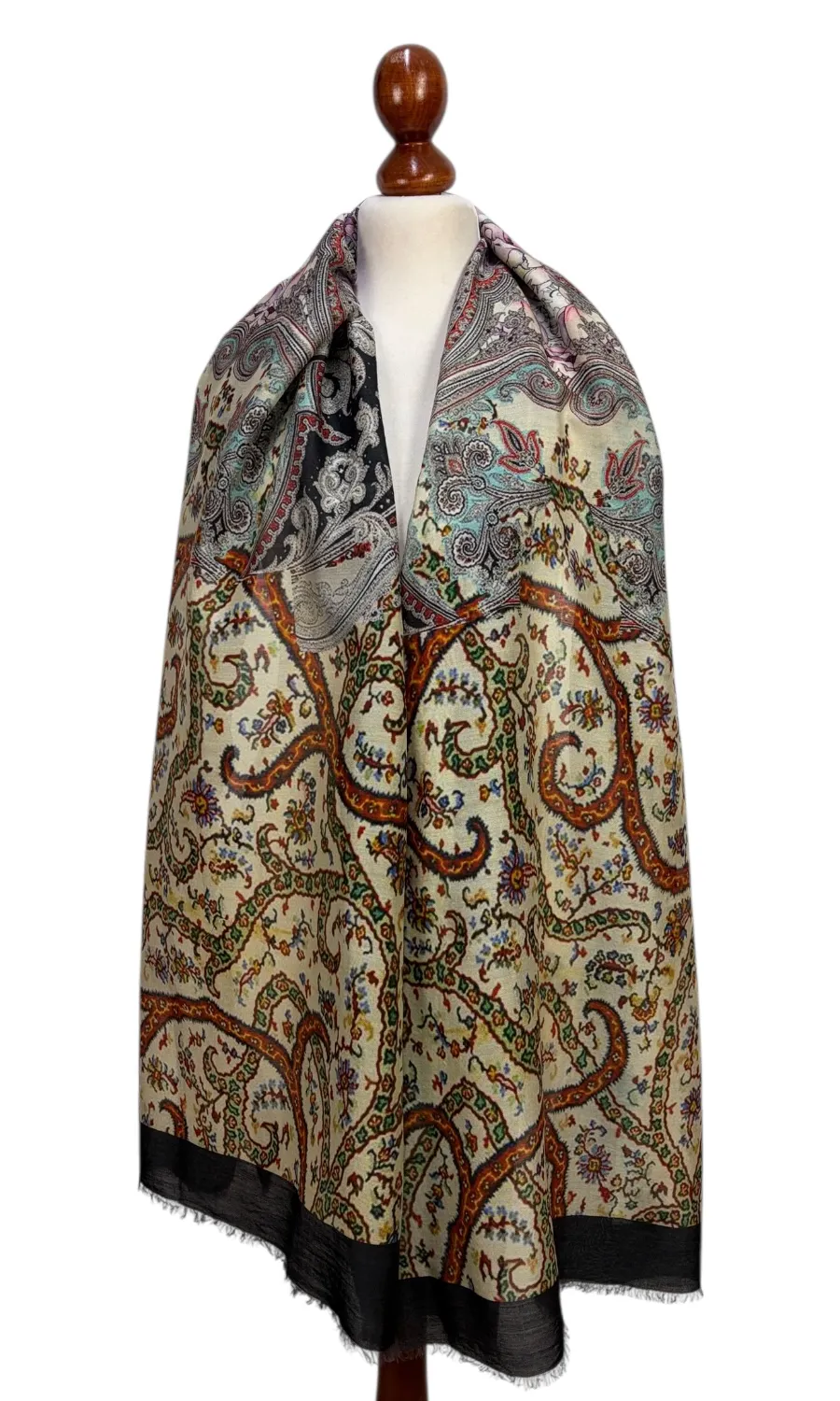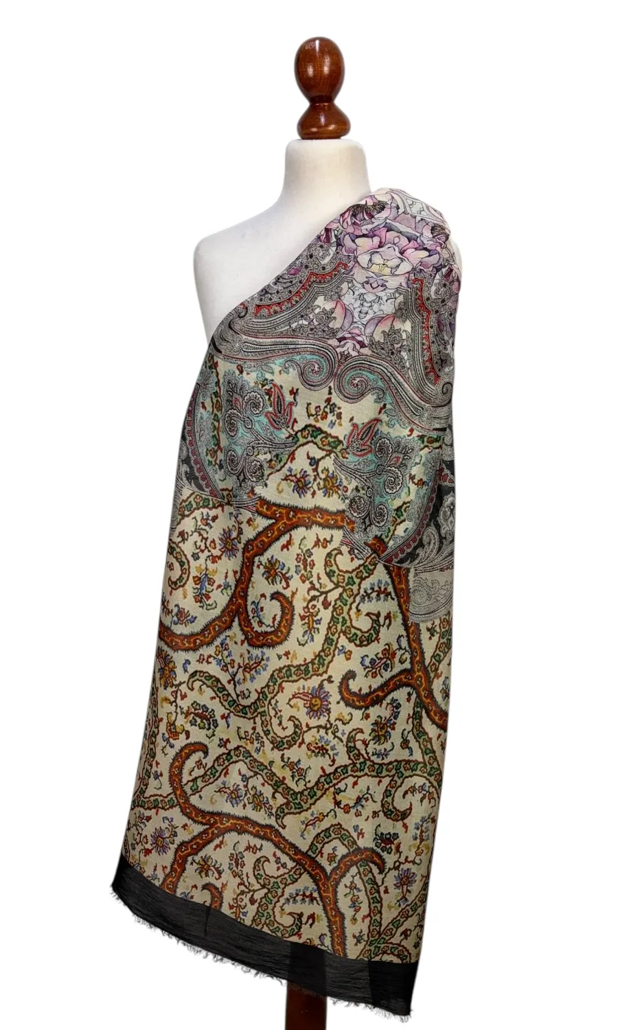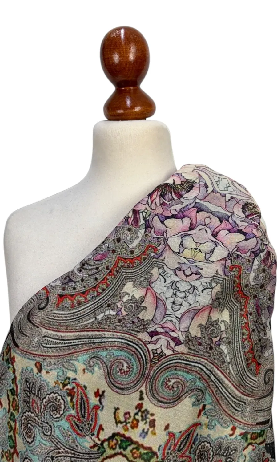 Dieser elegante Schal wurde in einer kleinen Firma in Indien gefertigt und ist ein echtes Highlight. Mit einer Größe von ca. 70cm x 200cm lässt er sich vielseitig binden und ist durch die hochwertige Qualität und das besondere Muster das Highlight zu jedem deiner Outfits. Mit einem Gewicht von ca. 190g schenkt dir wohlige Wärme und das Gefühl von absoluter Leichtigkeit.