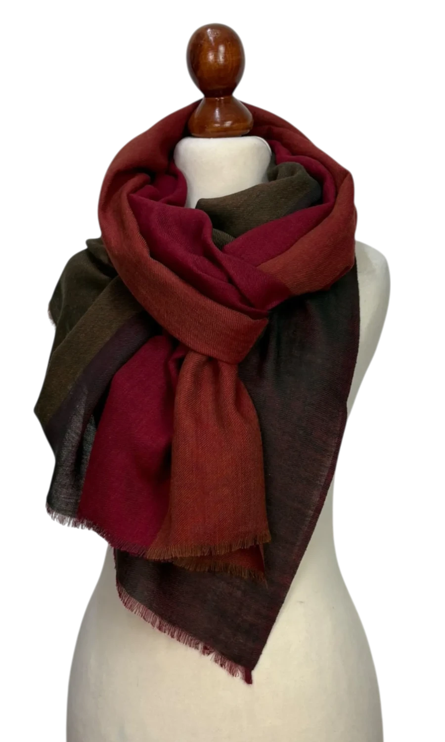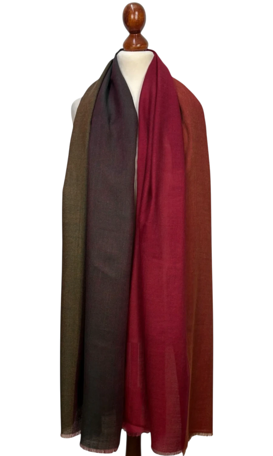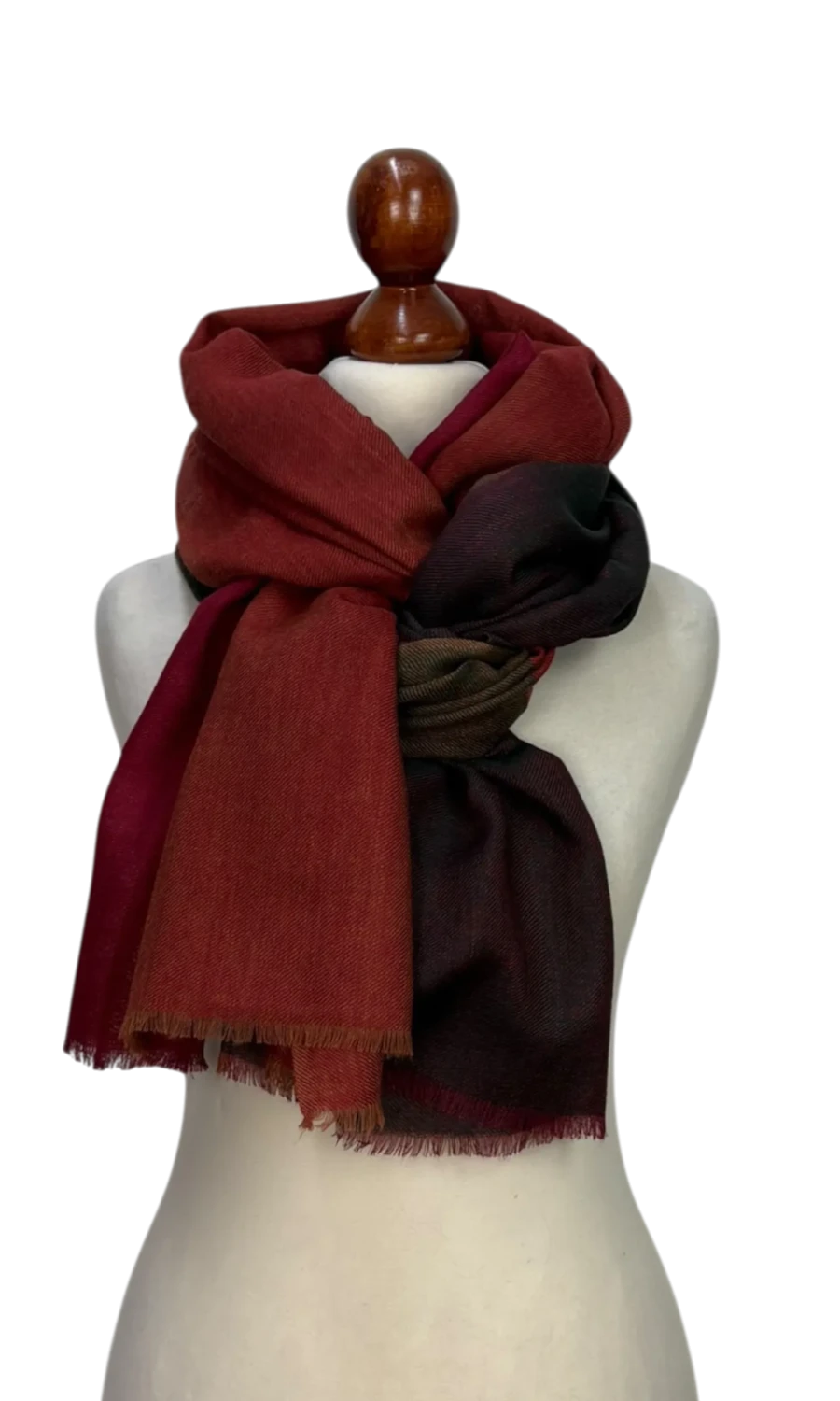 Dieser Schal wurde in Indien in einer kleinen Firma hergestellt und ist somit eine limitierte Besonderheit. Mit seiner Größe von 70cm x 200cm ist er bestens geeignet, um ihn vielseitig zu binden und zu tragen. Die feine Wolle ist hervorragend für kühlere Tage - auch an lauen Sommerabenden dient der Schal als Jackenersatz, großflächig um die Schultern getragen. Mit einem Gewicht von nur 110g ist er der perfekte Begleiter im Alltag und verzaubert mit seinem klassisch eleganten Design.