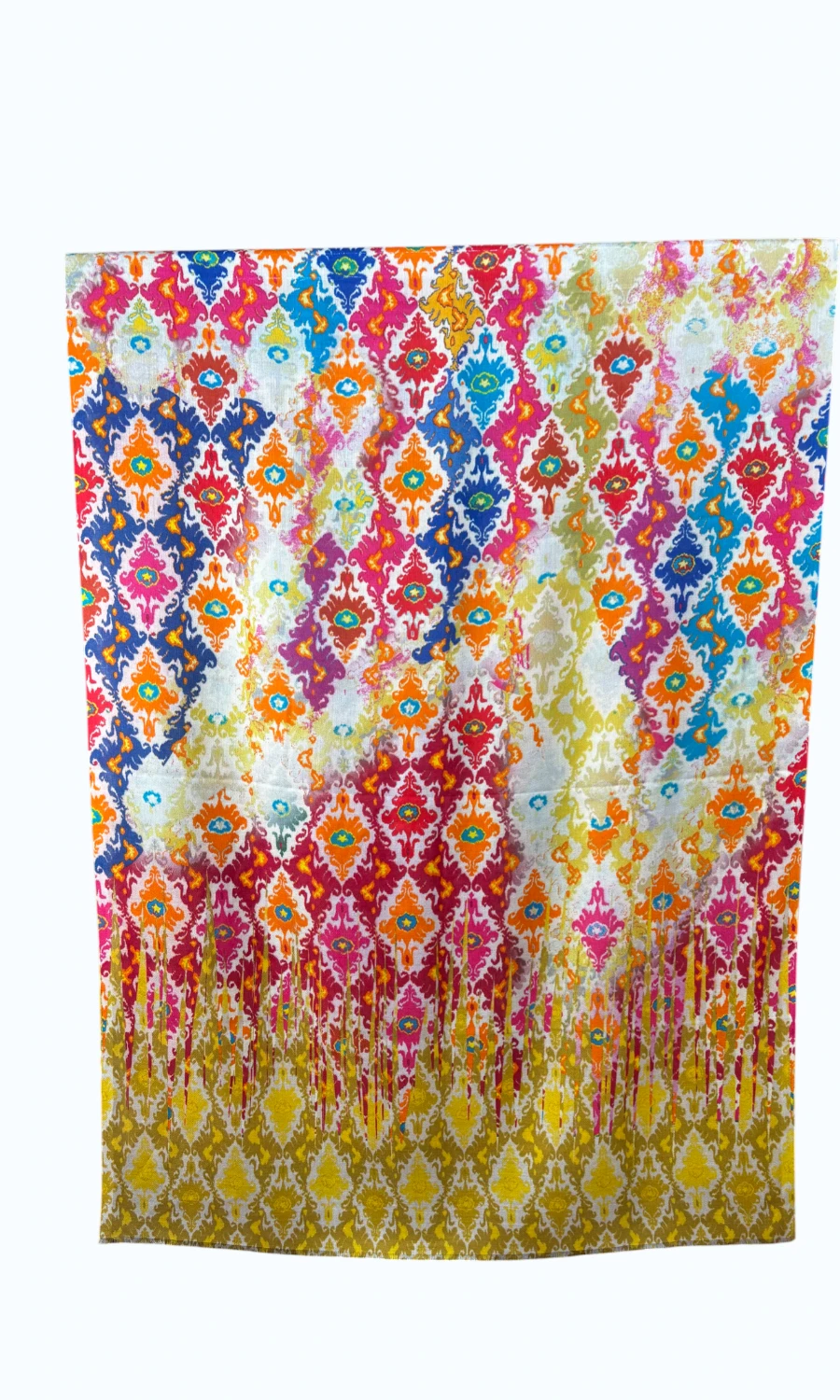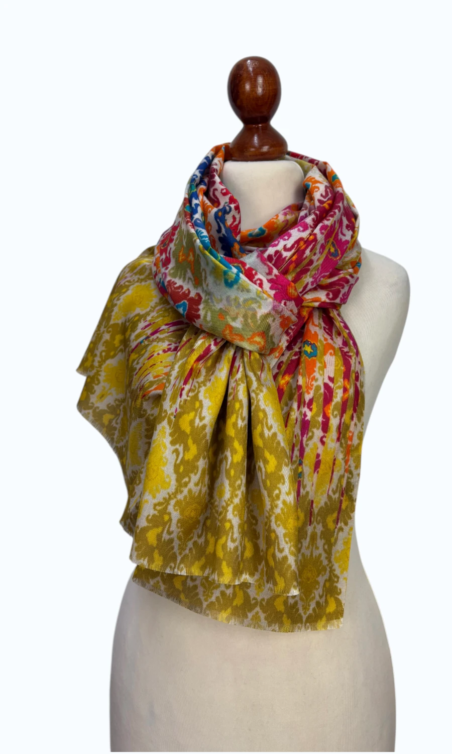 Damenschal aus hochwertiger Seide, mit auffällig schönen Mustern bedruckt.