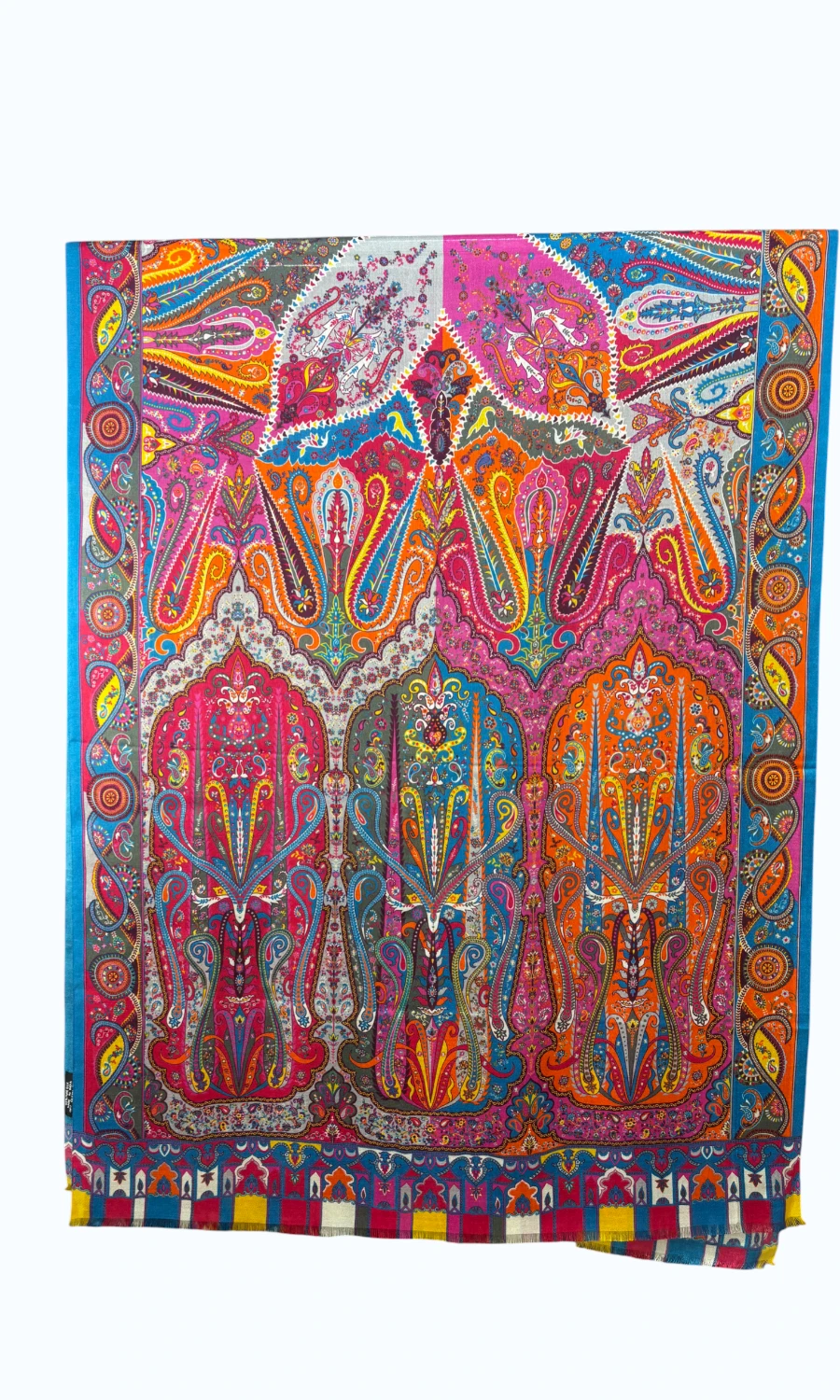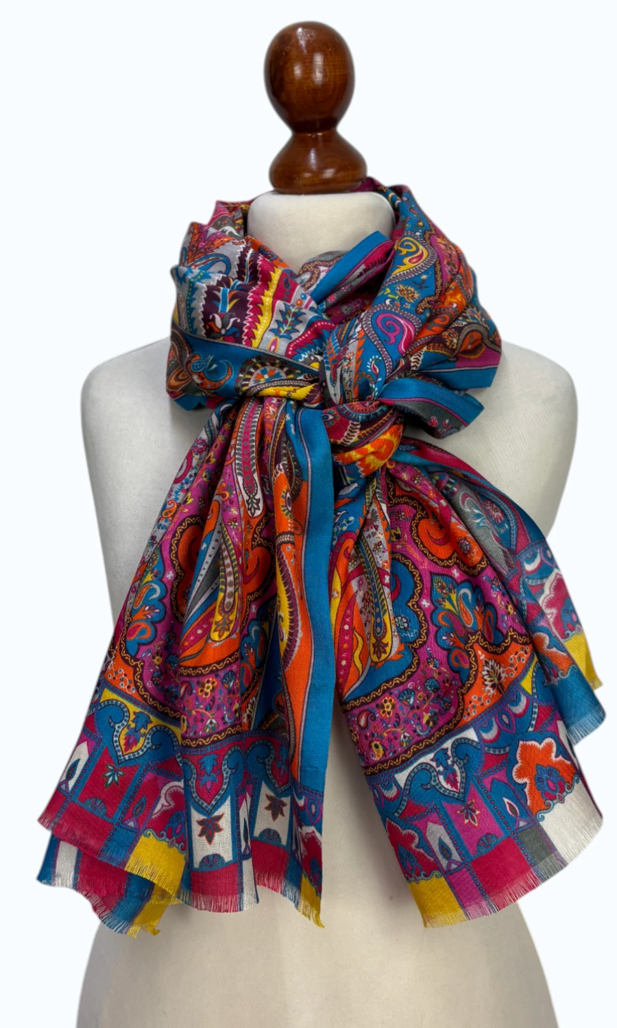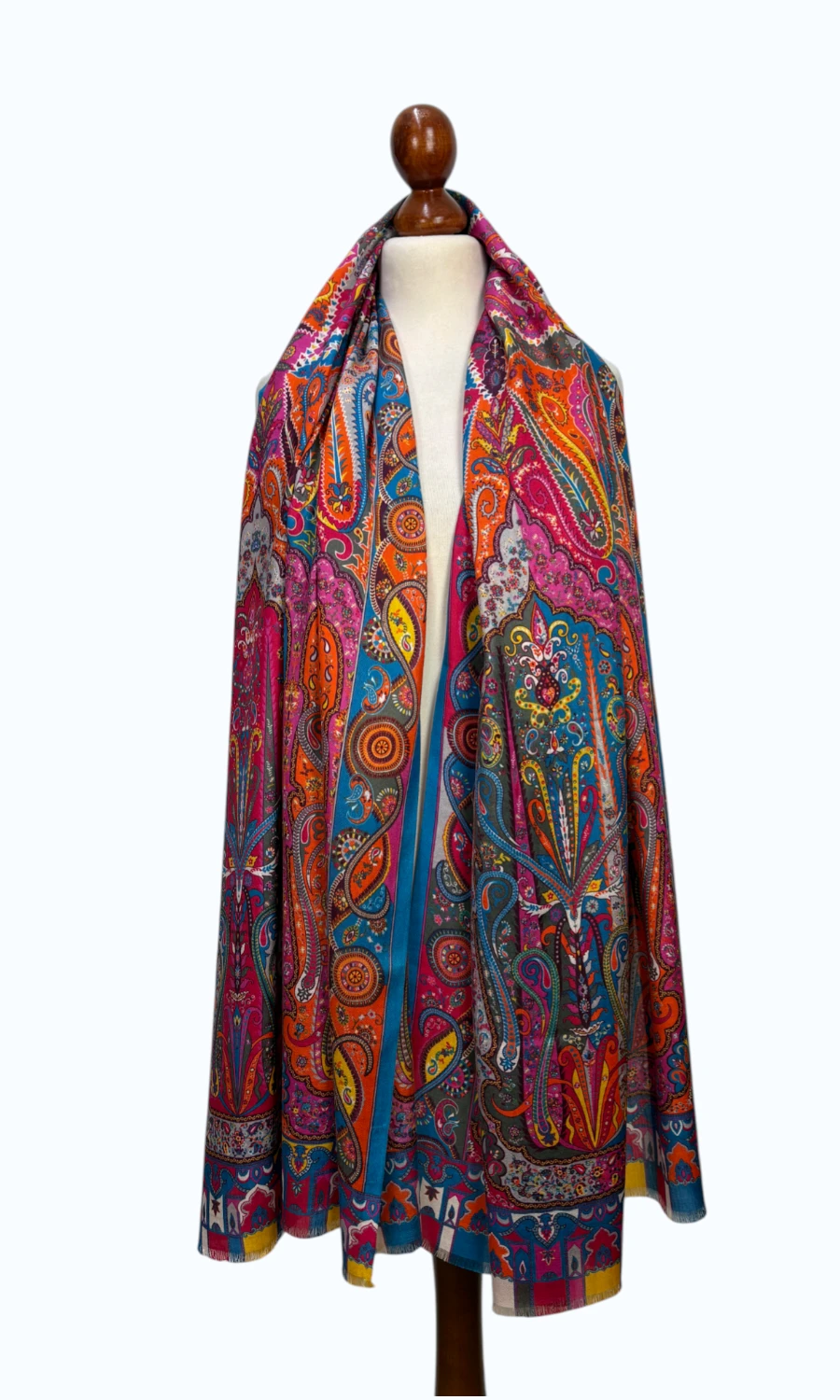 Damenschal aus hochwertiger Seide, mit auffällig schönen Mustern bedruckt.