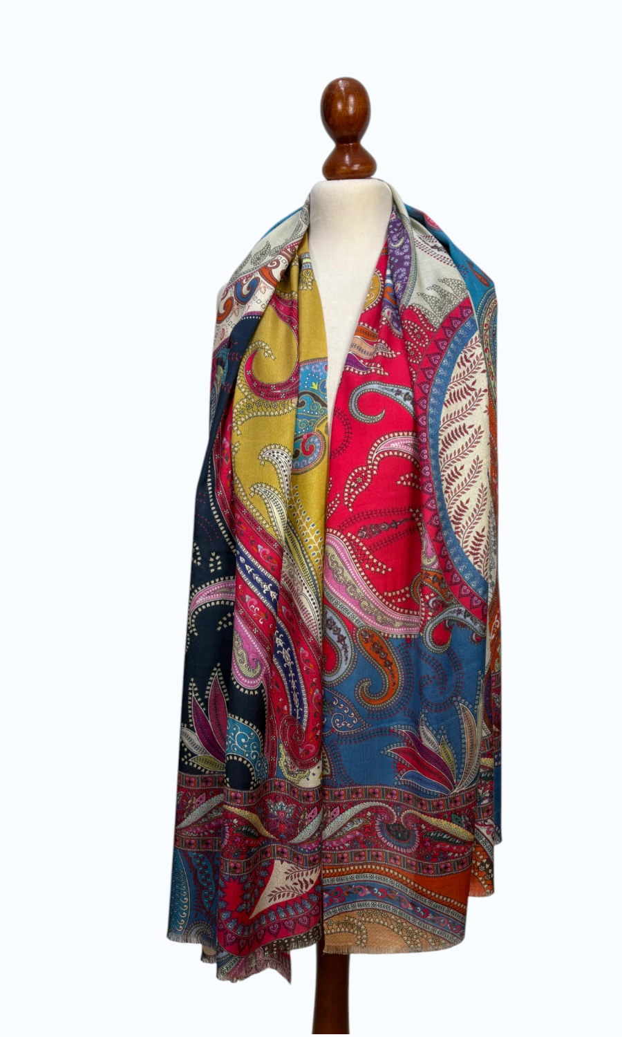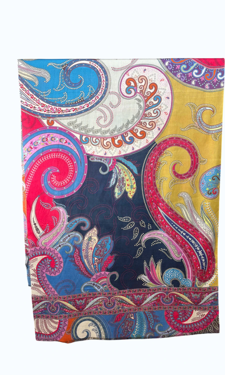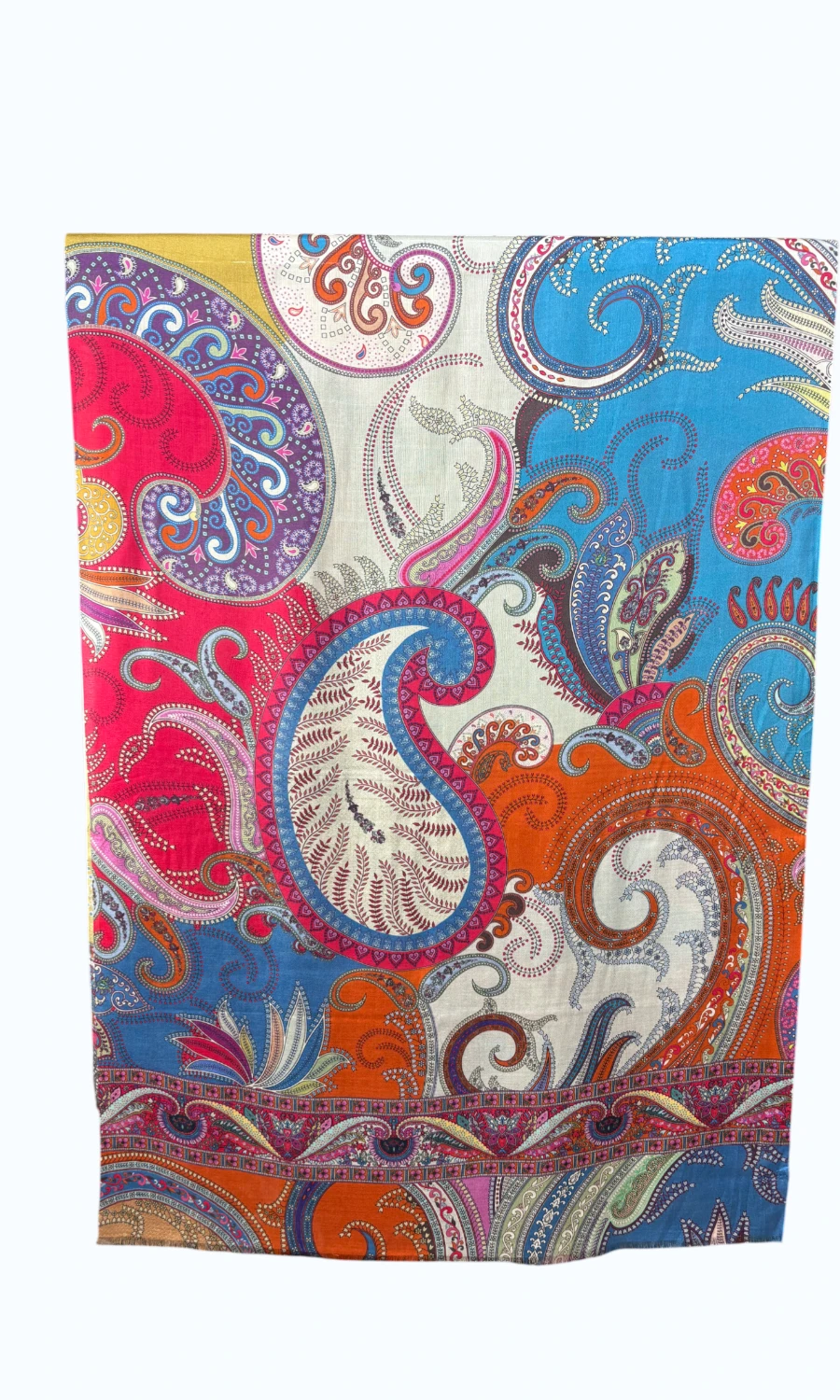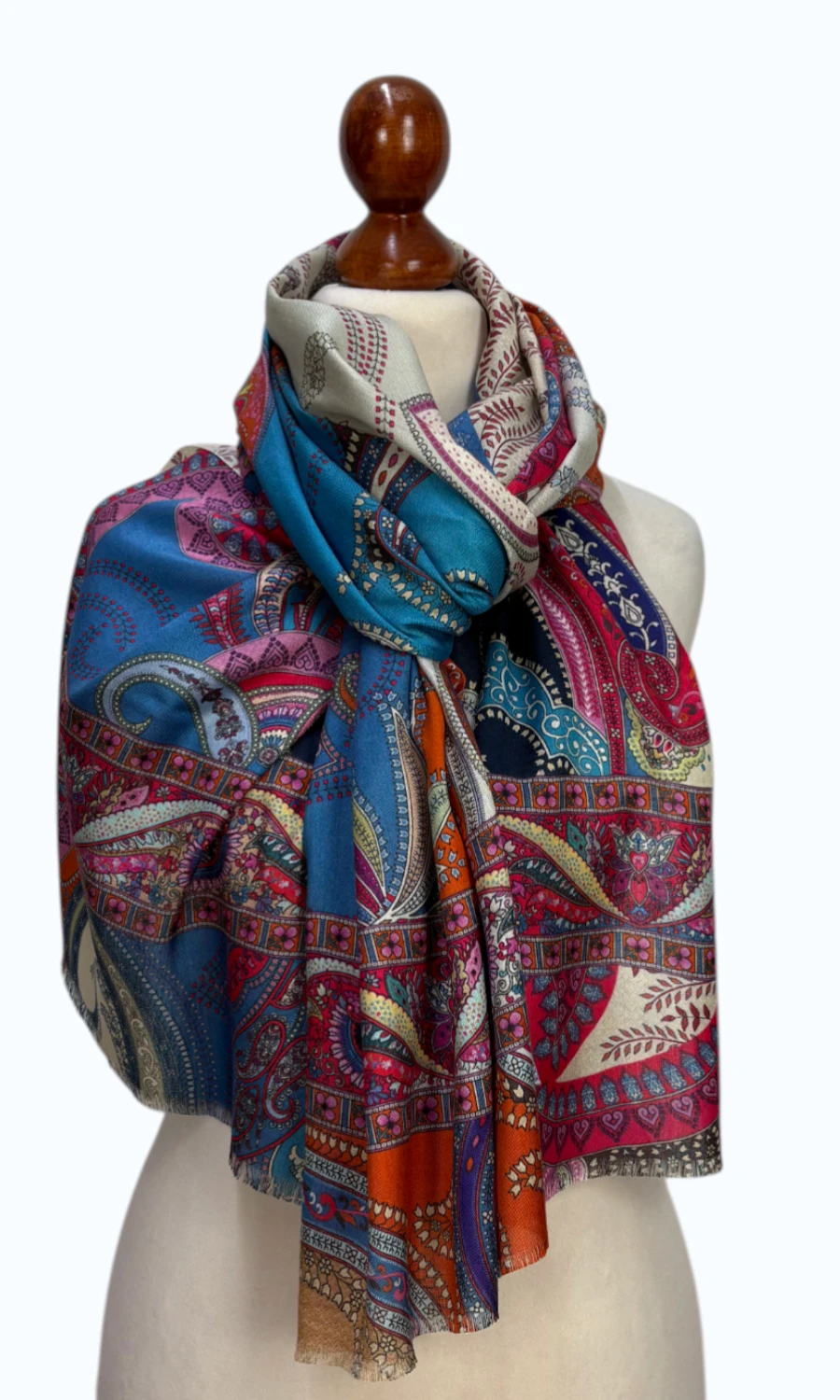 Damenschal aus hochwertiger Seide, mit auffällig schönen Mustern bedruckt.