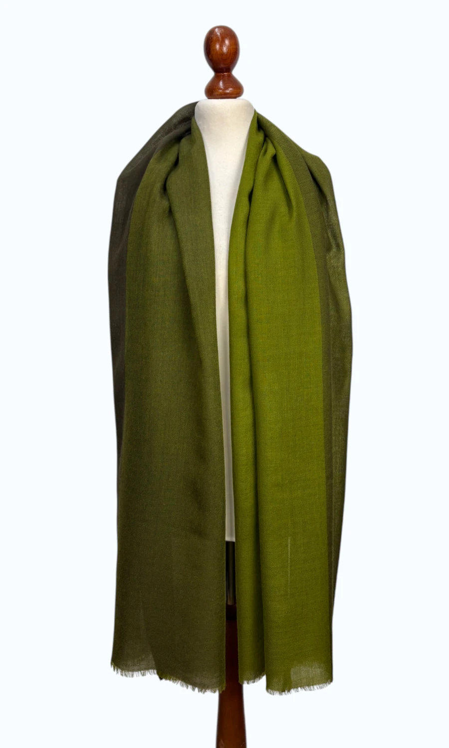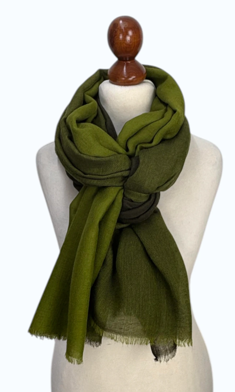 Faszinierende Stola mit Farbverlauf aus 50 % Pashmina und 50 % feiner Wolle.