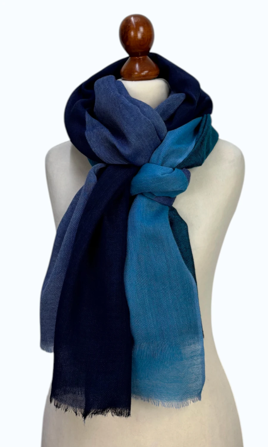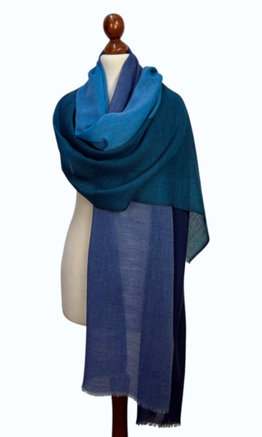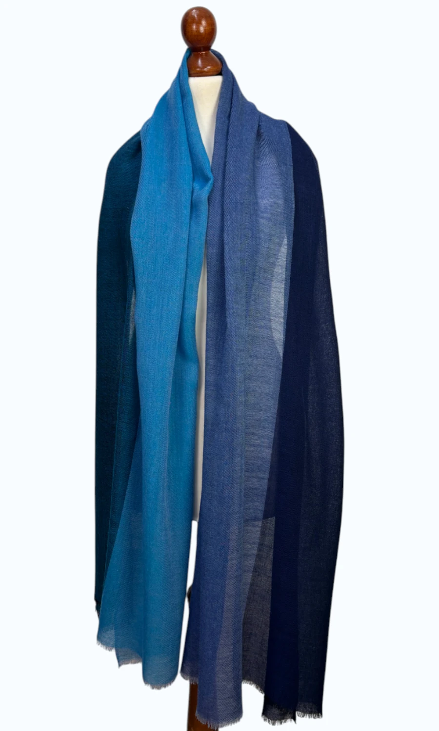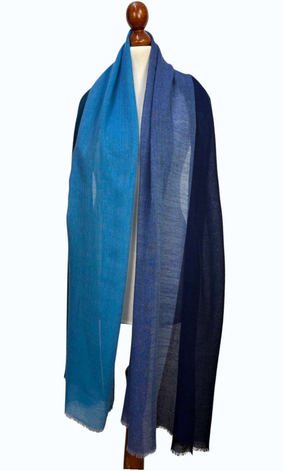 Faszinierende Stola mit Farbverlauf aus 50 % Pashmina und 50 % feiner Wolle.