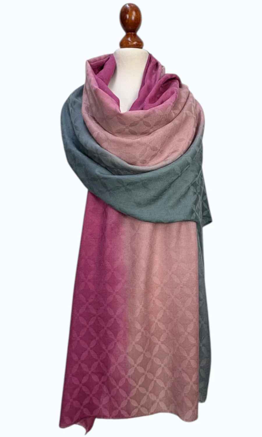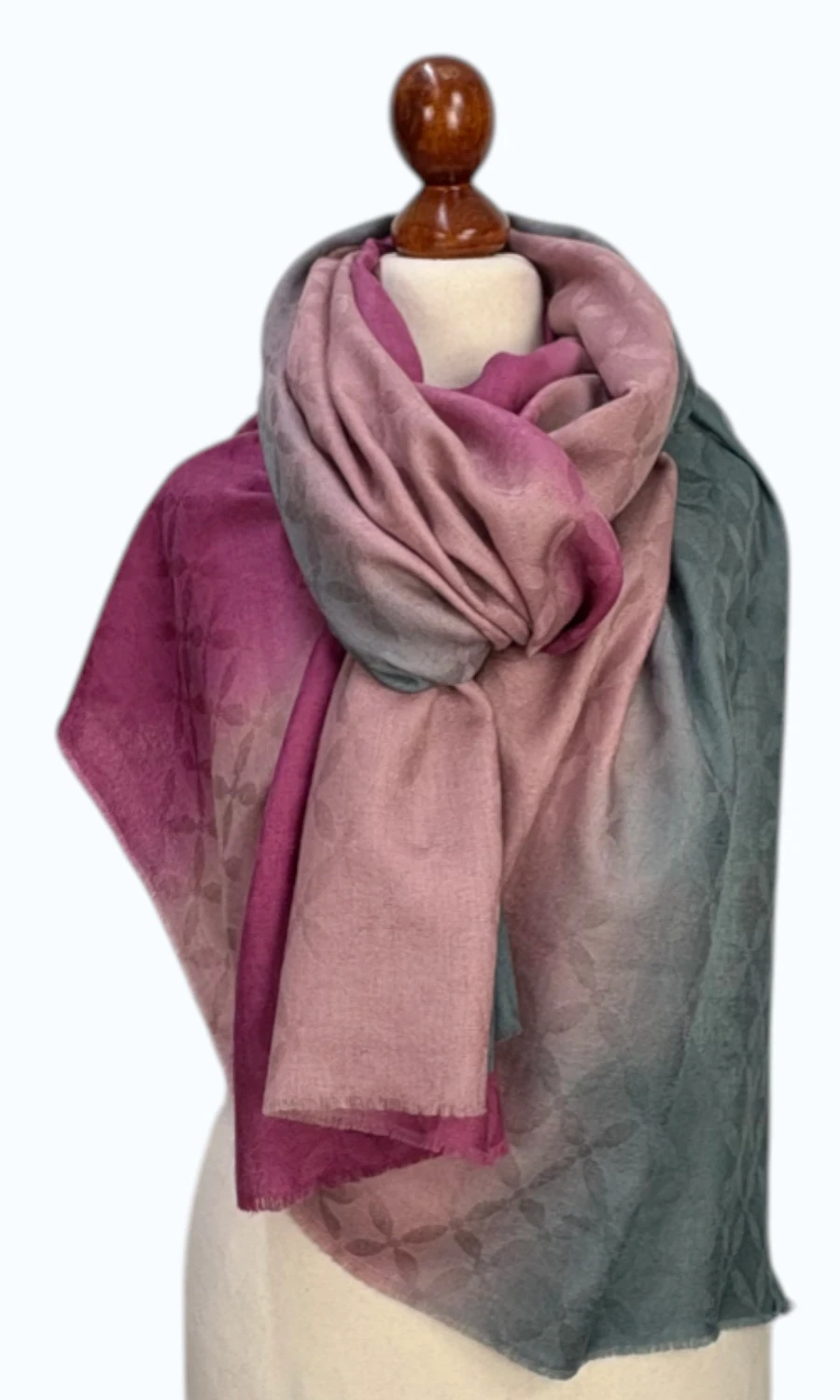 Faszinierende Stola mit Farbverlauf aus 50 % Pashmina und 50 % feiner Wolle.