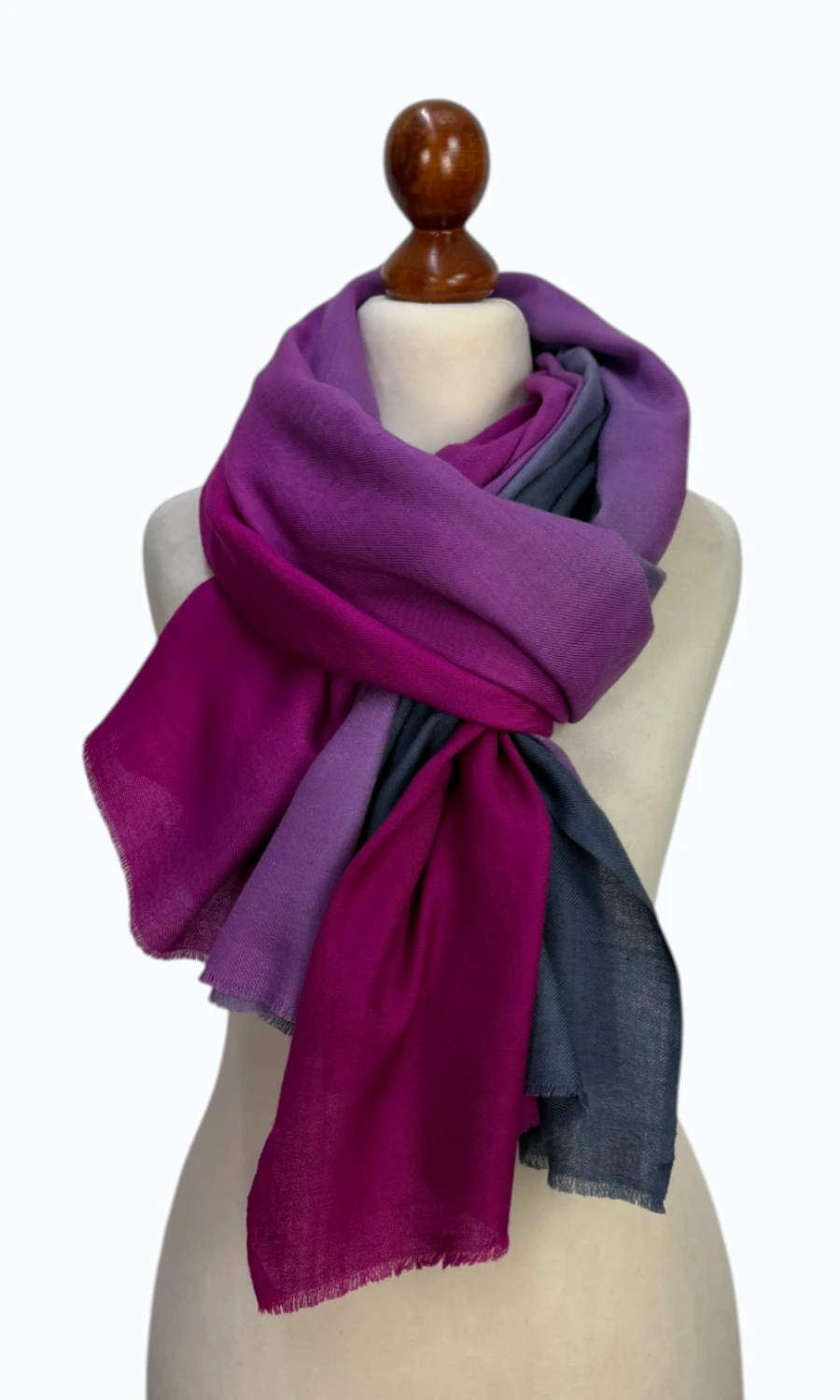 Faszinierende Stola mit Farbverlauf aus 50 % Pashmina und 50 % feiner Wolle.