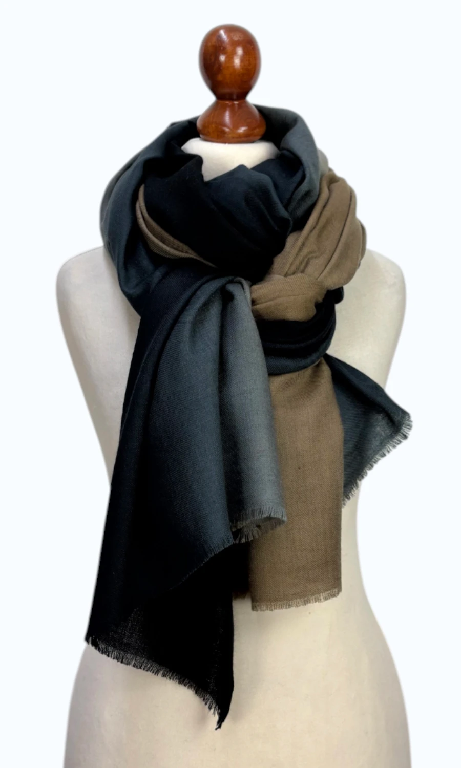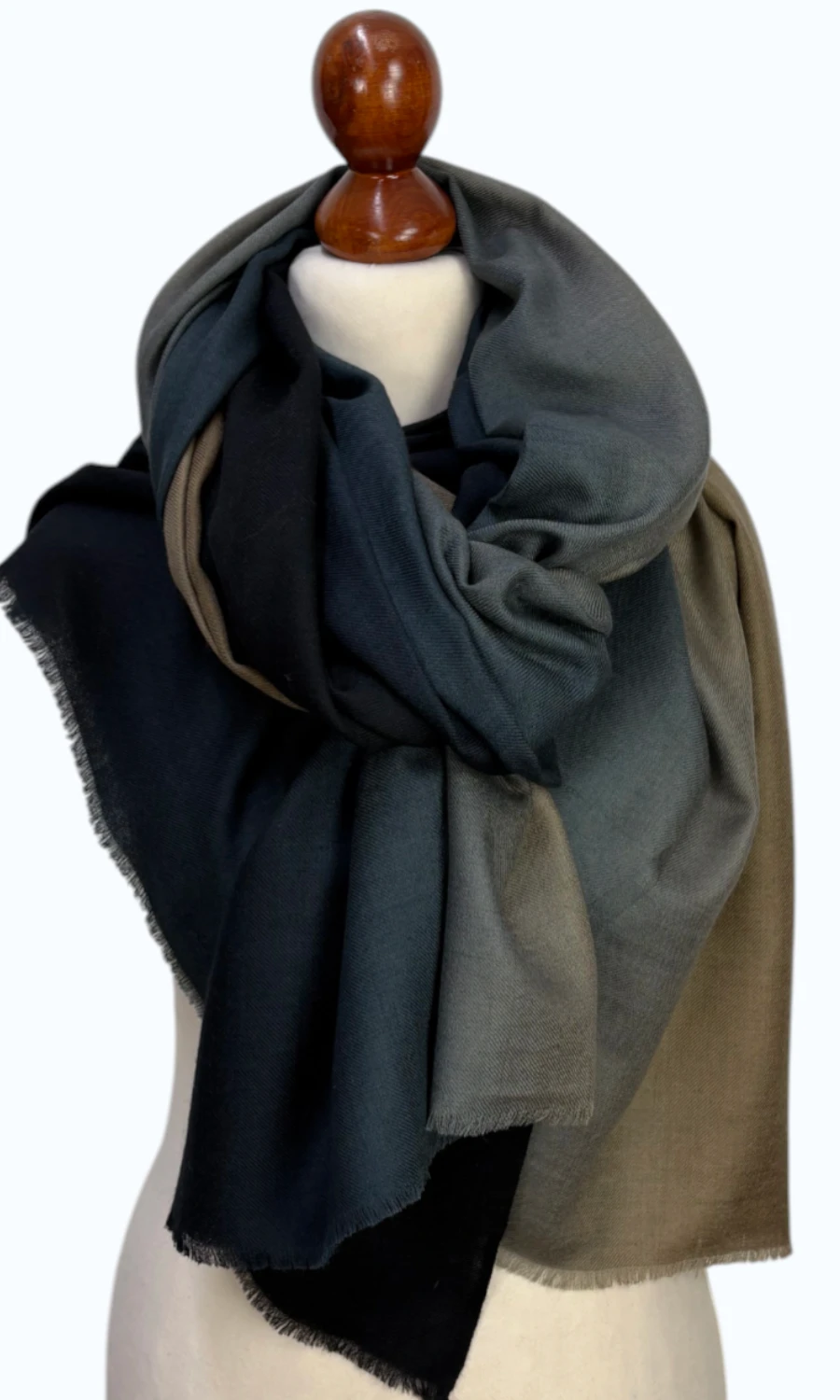 Faszinierende Stola mit Farbverlauf aus 50 % Pashmina und 50 % feiner Wolle.