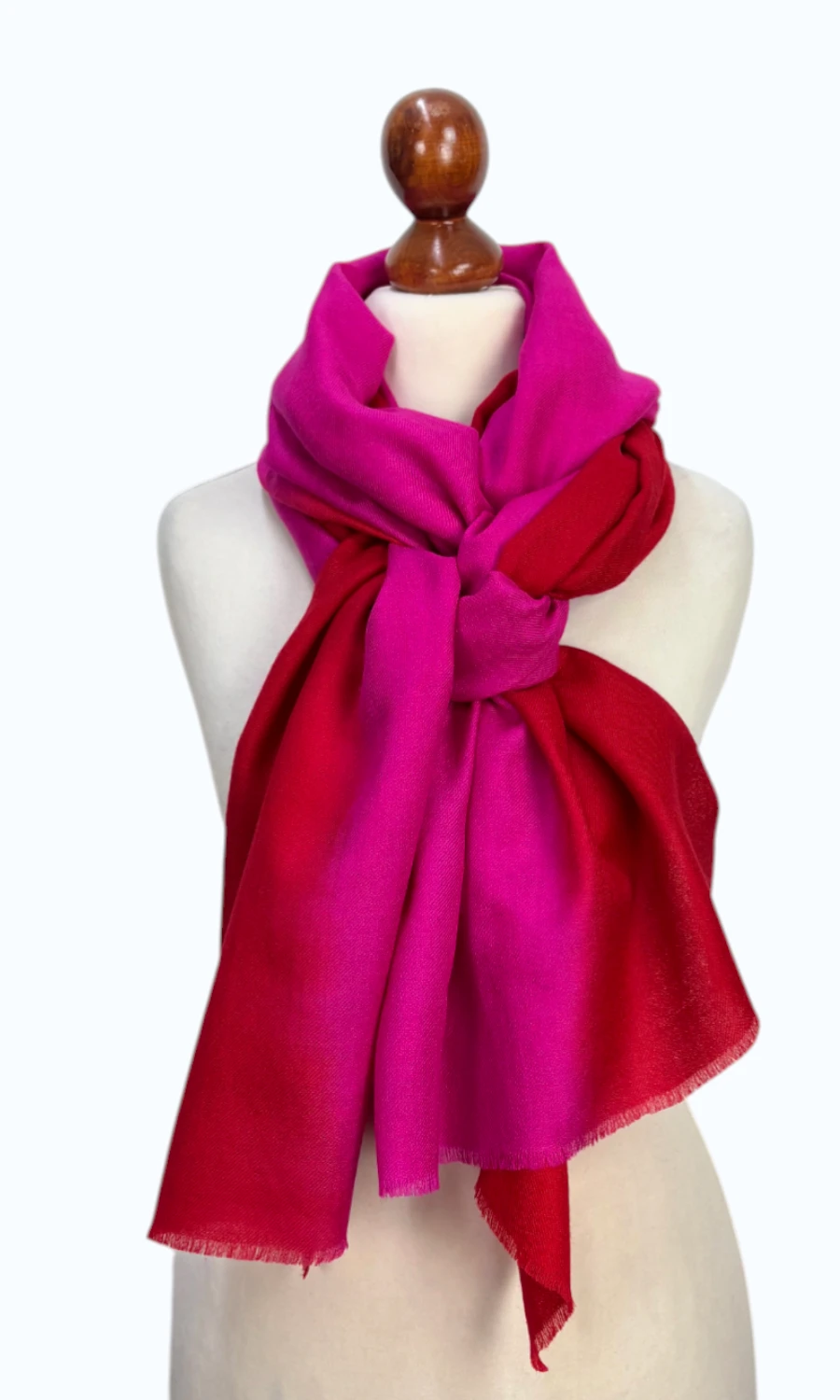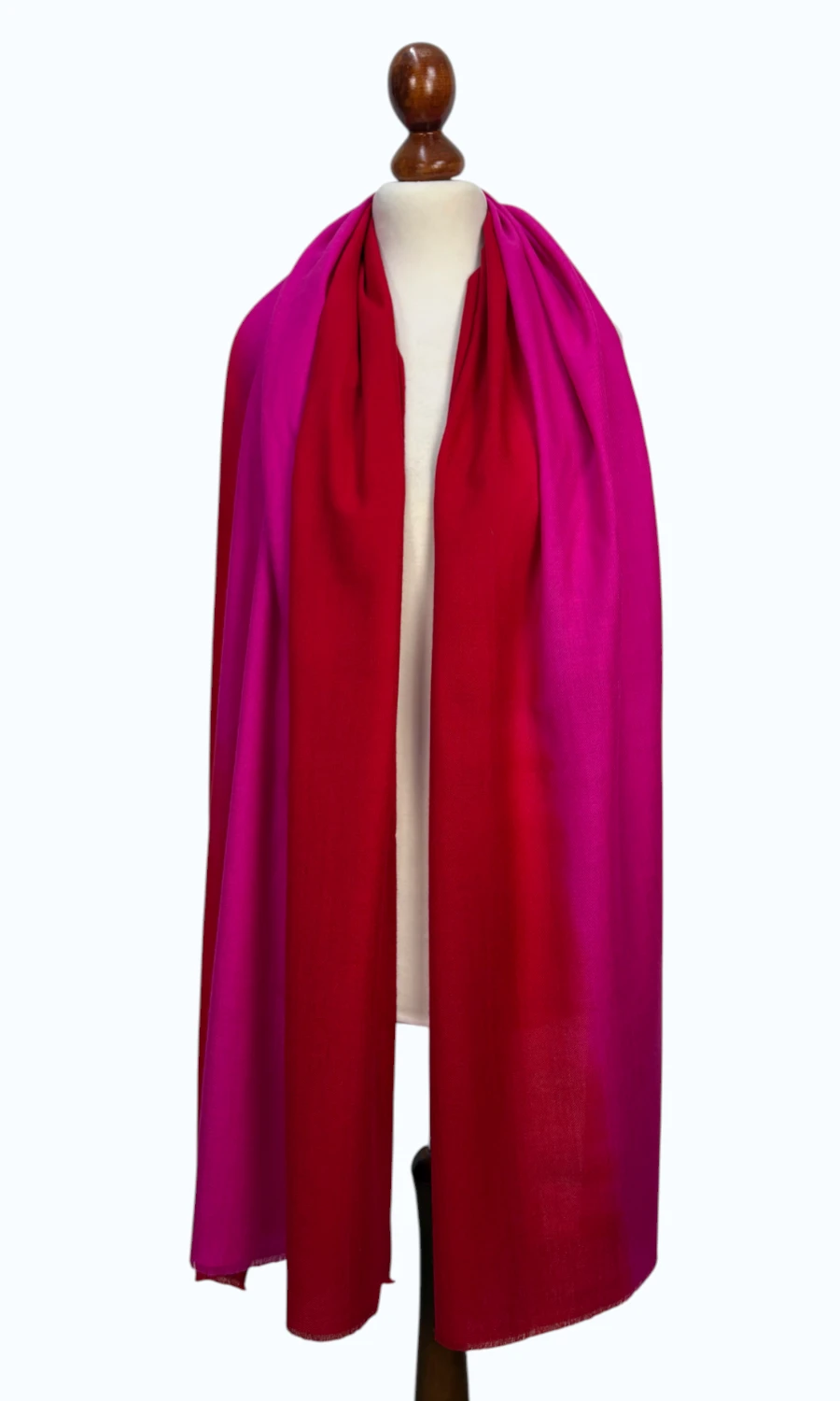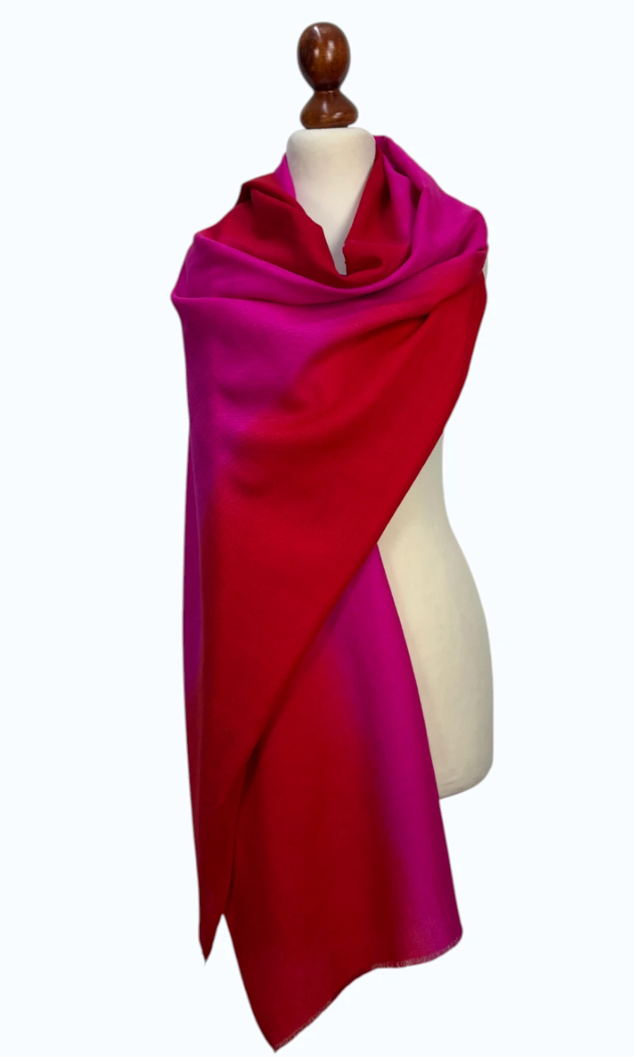 Faszinierende Stola mit Farbverlauf aus 50 % Pashmina und 50 % feiner Wolle.