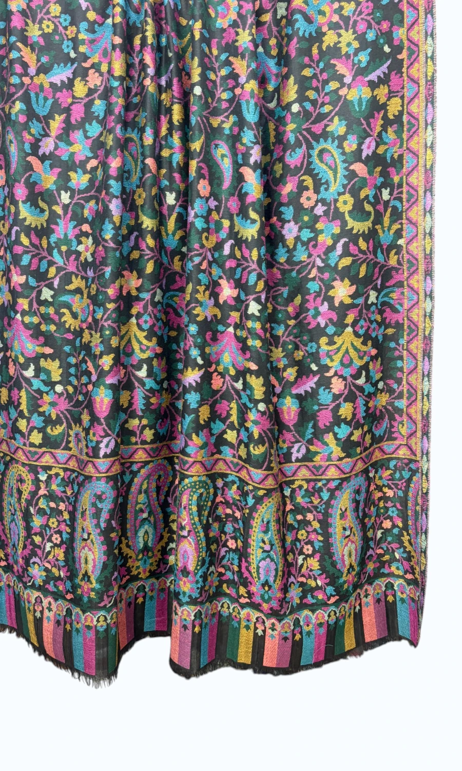 Eine echte Besonderheit ist die Rückseite des Schals: Die offene Webart verleiht dem Gewebe eine einzigartige Struktur und unterstreicht den exklusiven Charakter dieses Accessoires. Mit seinen großzügigen Maßen von 100 x 200 cm bietet er dir unzählige Styling-Möglichkeiten, bleibt dabei aber mit einem Gewicht von nur ca. 230 g angenehm leicht und luftig. Egal ob als eleganter Akzent oder als sanfte Schicht an kühlen Abenden – dieser Schal schmiegt sich wunderbar an, ohne aufzutragen, und verbindet traditionelle Webkunst mit moderner Leichtigkeit.