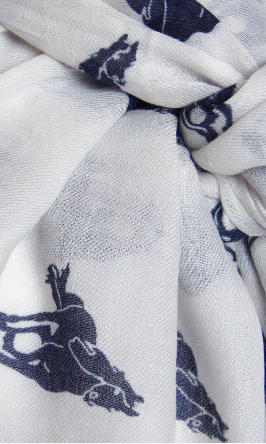 Hochwertig gefertigter Schal aus feiner Kaschmirwolle, im Pferdemuster bedruckt.